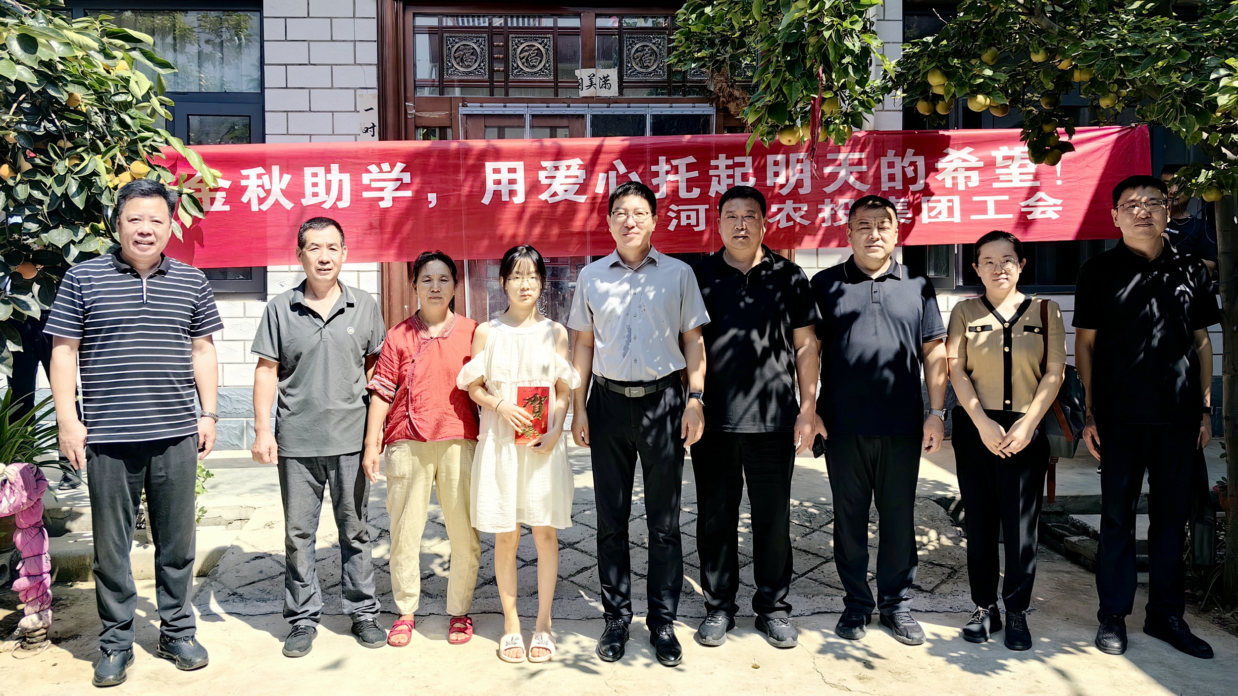 张峰一行探望慰问了集团驻村第一书记,,,,,到杨梁村今年考入高等院校的难题学生家中,,,,,把集团金秋助学关爱金送到学外行中,,,,,勉励学子学好知识、掌握本事、增添本领,,,,,把各级的眷注关爱转化为回报社会、建设家乡的动力,,,,,起劲成为栋梁之材。。。